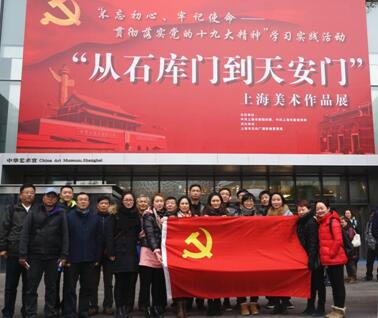参观了“从石库门到天安门”上海美术作品展。通过一幅幅作品,使党员同志们深刻了解了中国共产党的历史,深刻理解了“不忘初心、牢记使命”的重要意义和使命所在。同时,透过作品所呈现的几十年来上海美术界坚持党的“双百方针”和“二为方向”结出的丰硕成果,感受到不同时代的上海风貌,真正使美术作品所承载的精神实质和思想内涵入脑入心。
